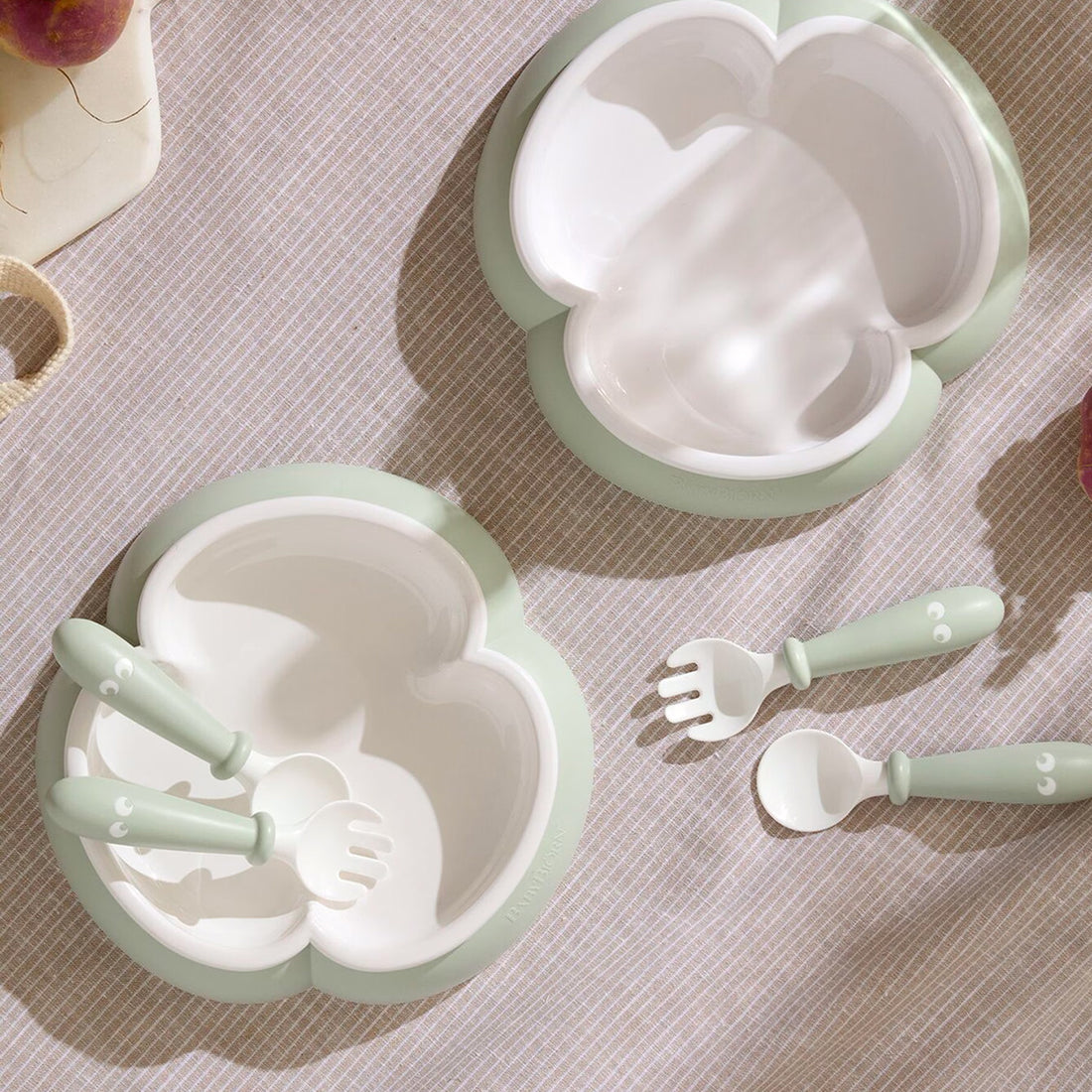 From the first spoonfuls to more independent meals, this set makes self-feeding a smoother experience. The three-leaf-shaped plate stays put with a non-slip base, while the fork and spoon are ergonomically crafted for small hands. Curved edges prevent slipping, and the short, chubby handles are easy to grip, helping your baby gain confidence at mealtime.