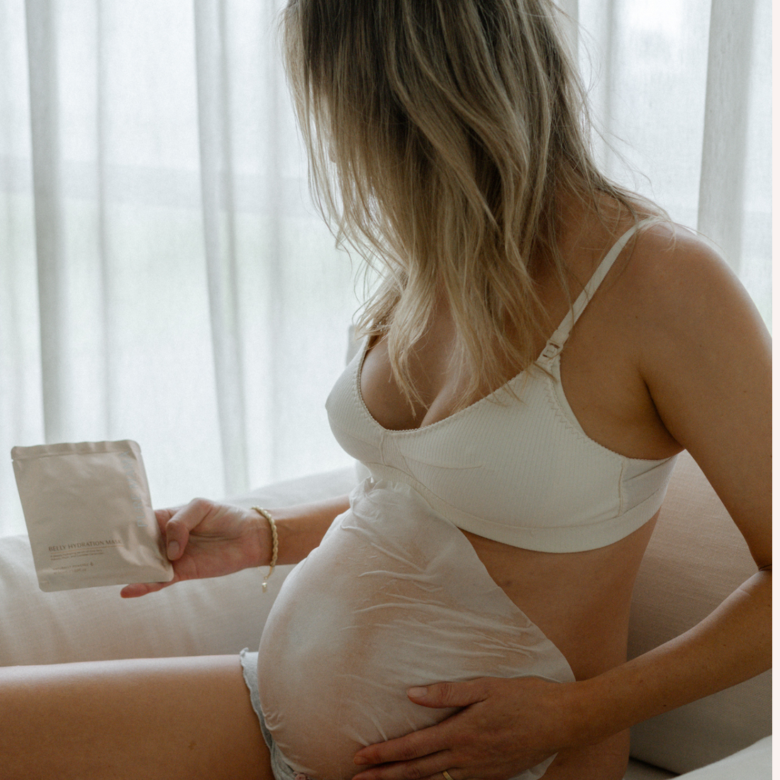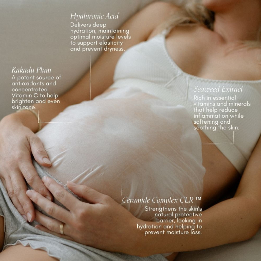 Growing a human is no small feat â and your skinâs doing a lot of stretching to keep up. This belly mask is like a big drink of water for tired, dry skin. Itâs made from 100% cotton and soaked in a serum packed with lovely, skin-loving ingredients to hydrate and soothe.