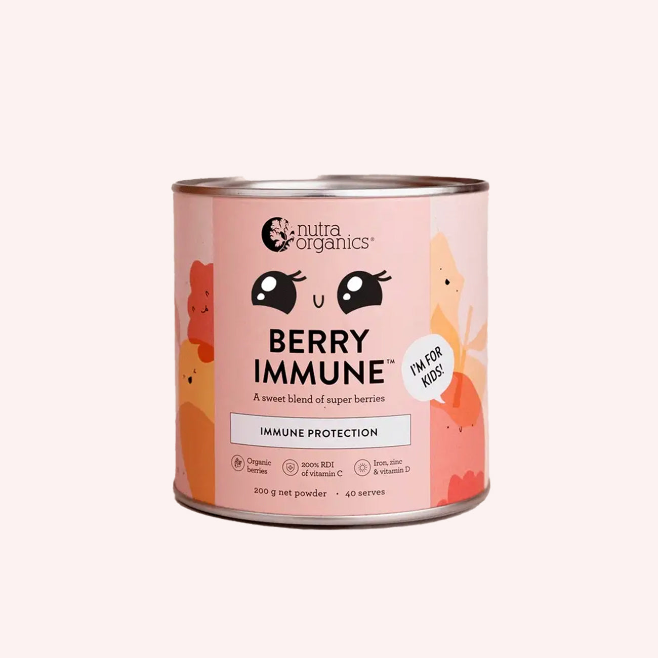 Nutra Organics Berry Immune is a sweet pink powder packed with bioavailable vitamin C, zinc, iron, and vitamin D from pure wholefoods, including nine super berries. It's perfect for kids aged 12 months and older, helping to bolster their immune system, support growth and development, and promote gut health. Free from artificial nasties, gluten, and refined sugar, it's a tasty way to sneak vital nutrients into your child's diet.