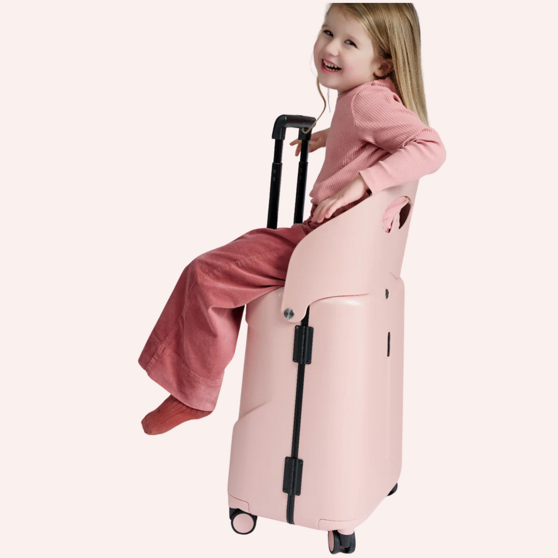 A suitcase that doubles as a seat and ride on for easier family travel.