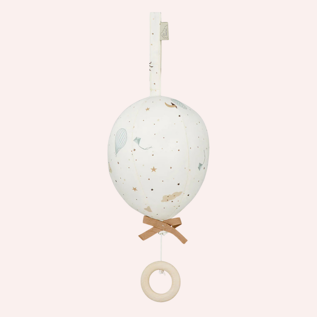 This dreamy handmade balloon-shaped mobile adds a whimsical, vintage-inspired touch to your nursery. Made from OCS-certified organic cotton and filled with Oeko-Tex polyester, it’s soft, eco-friendly, and safely designed. The gentle melody calms your little one, encouraging sensory exploration and peaceful moments before sleep.