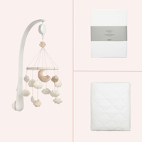 Purchase the Oska Cotbed & Mattress bundle and receive a Cloud Musical Mobile, sheet AND mattress protector FREE (valued at $329.85).
