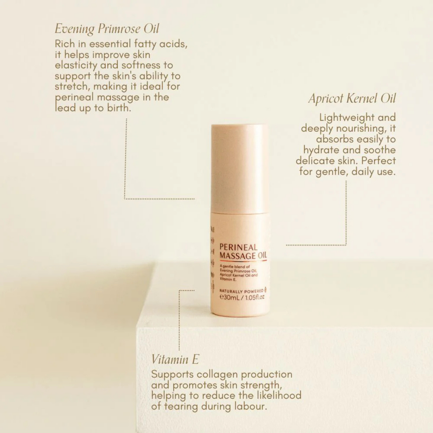 When it comes to preparing for birth, perineal massage can help improve elasticity and reduce the risk of tearing. This beautifully lightweight oil from Pure Mama is made with 100% natural ingredients, specifically chosen for their ability to hydrate, soothe and support your skin during late pregnancy. Infused with organic botanicals like rosehip, calendula and vitamin E, itâs designed to be used from 34 weeks onward to help soften the skin and increase perineal flexibility. Itâs free from synthetic fragrance, cruelty-free, and made in New Zealandâsafe for you and baby.