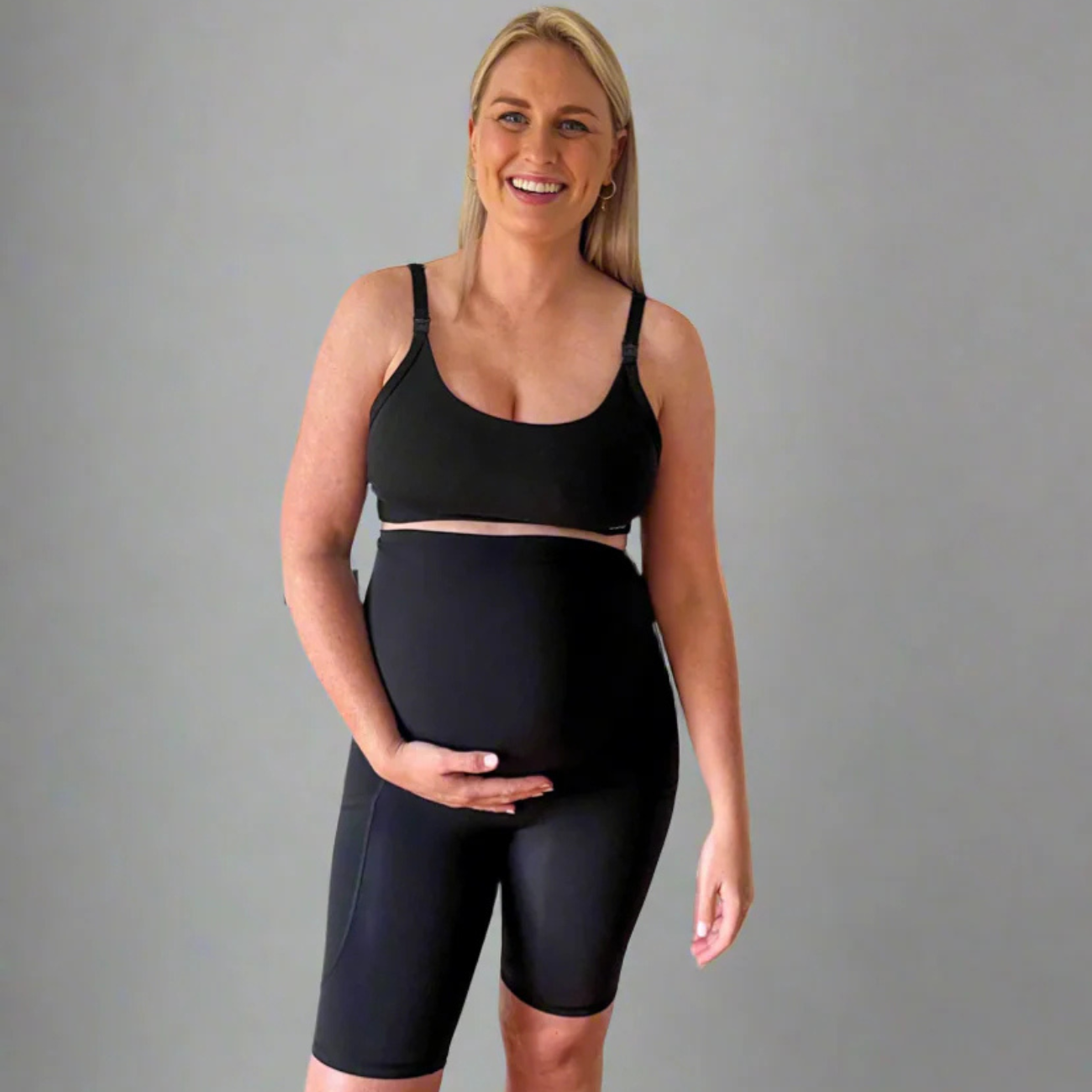 The most comfortable and supportive compression shorts to grow with you from first trimester to full term.