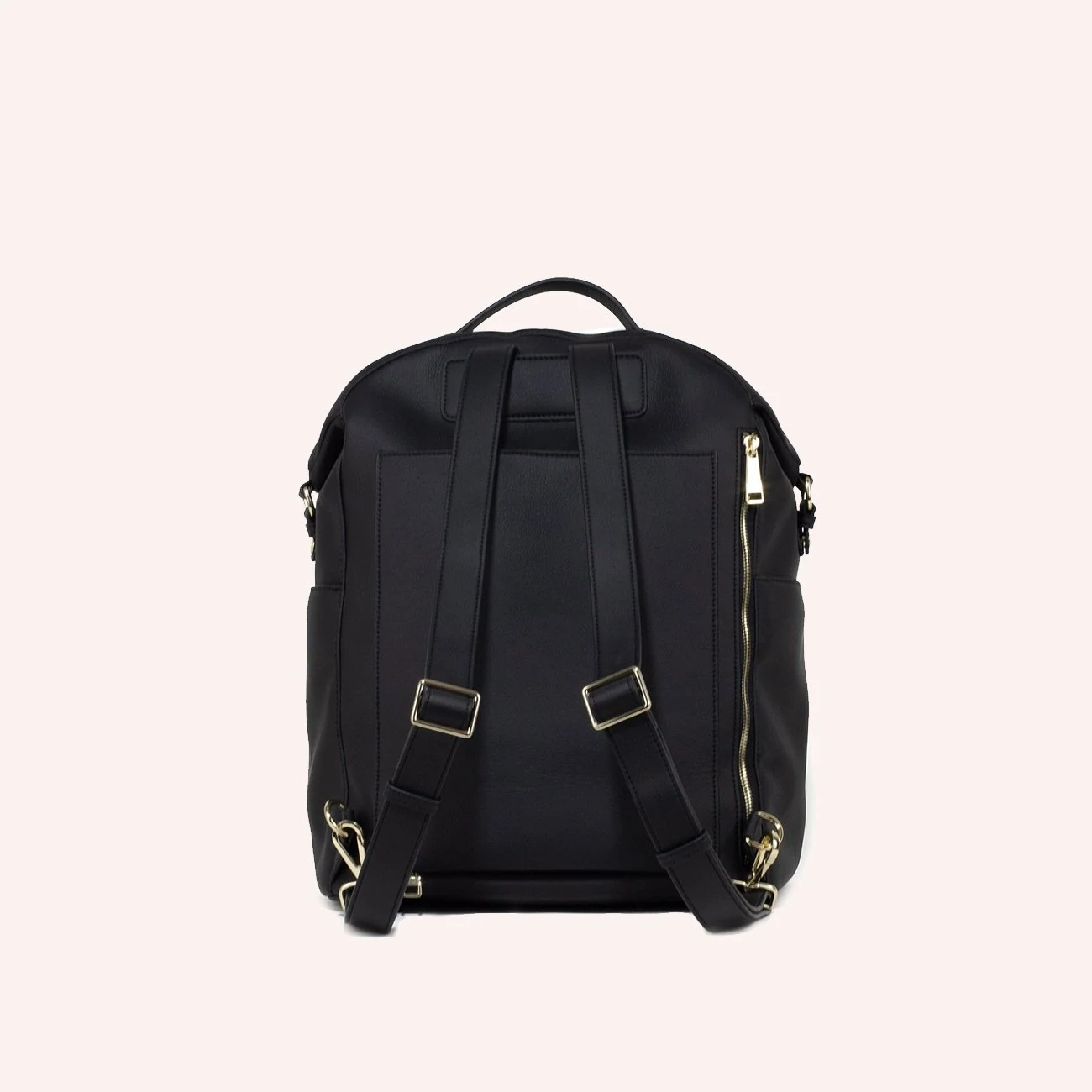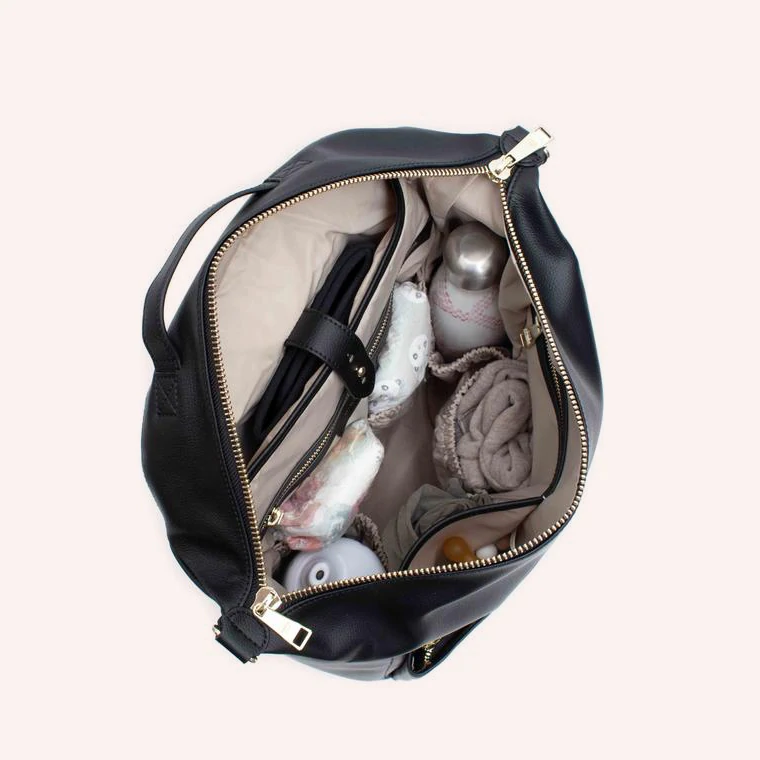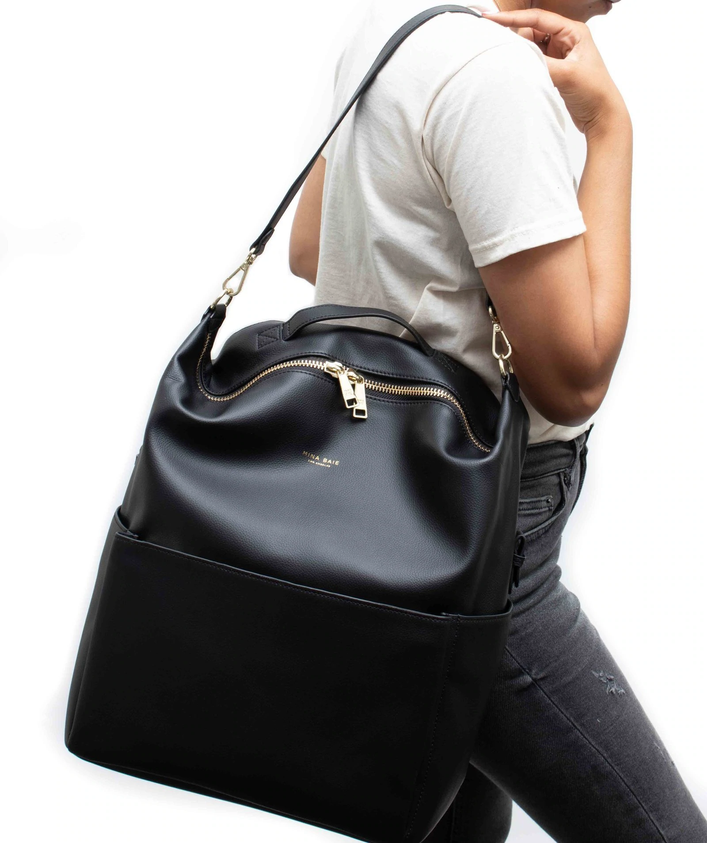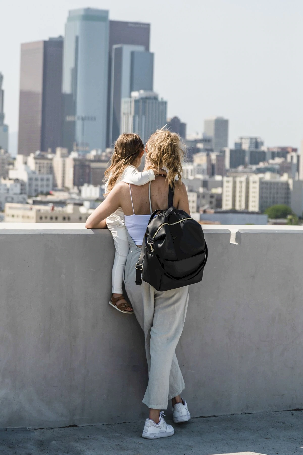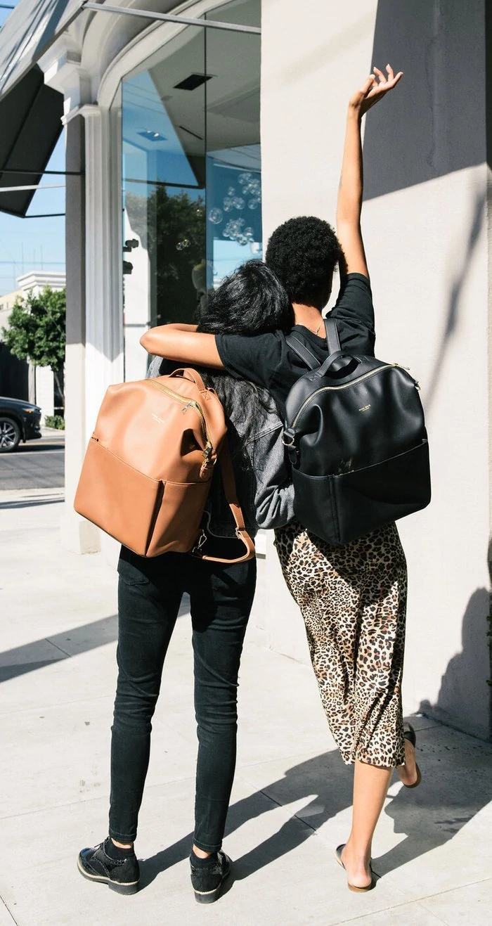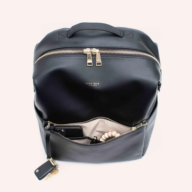 Incredibly spacious and still so chic, the minimalist Stevie Gunmetal from Mina Baie is the baby bag you need to stay stylish, organised and nimble when out and about with your newborn. Made of vegan material that feels and looks like leather, this new season backpack straight out of LA is incredibly functional while still looking luxe and on-trend. Play with the different configurations to suit your day - you can wear it on your back for hands free activities, or just on your shoulder, it also comes with a grab handle. The super spacious centre compartment will help you fit everything you need for a day out with your baby and comes with four external pockets, eight internal pockets, a key leash and a 15 inch built in padded laptop sleeve. Thereâs also an insulated bottle pocket and exterior bottle pockets and a grab handle to pick up and go, effortlessly.