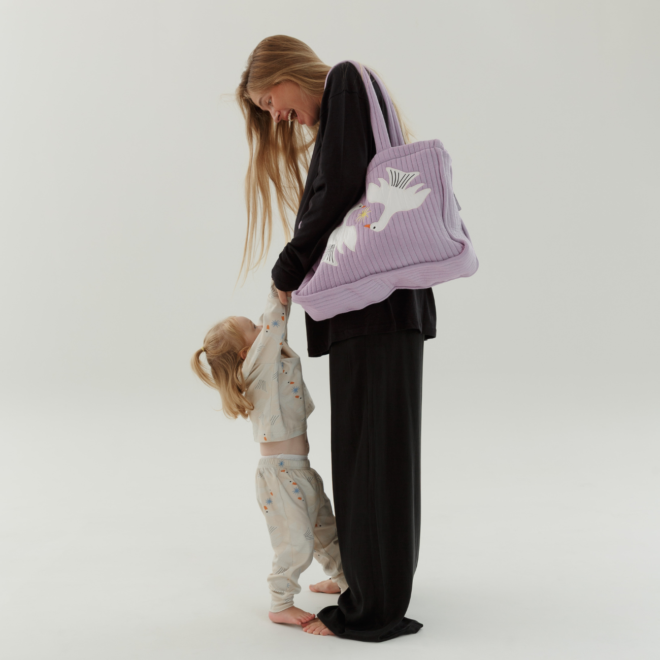 The nappy bag that makes you look cool carrying a nappy bag. Personality and fun in buckets, this is a bag that will brighten your day, everyday, because you use it everyday. Featuring a dedicated wipes pocket, internal pouch for a bottle, pram straps and waterproof lining — this bag is practical and cool.