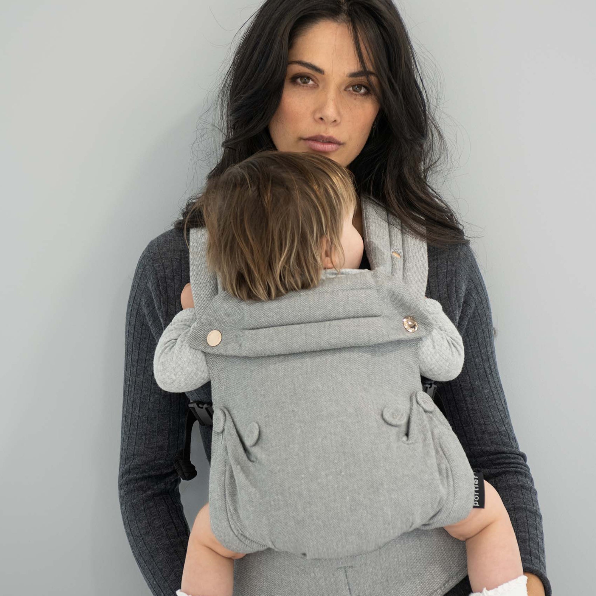 while keeping your baby close. Sophisticated, modern and not too cumbersome, the cult Portier Limitless Carrier hits all the right notes. It features crossable shoulder straps for even weight distribution and is made from 100% natural fibres that make it breathable for the baby and less heavy for you.