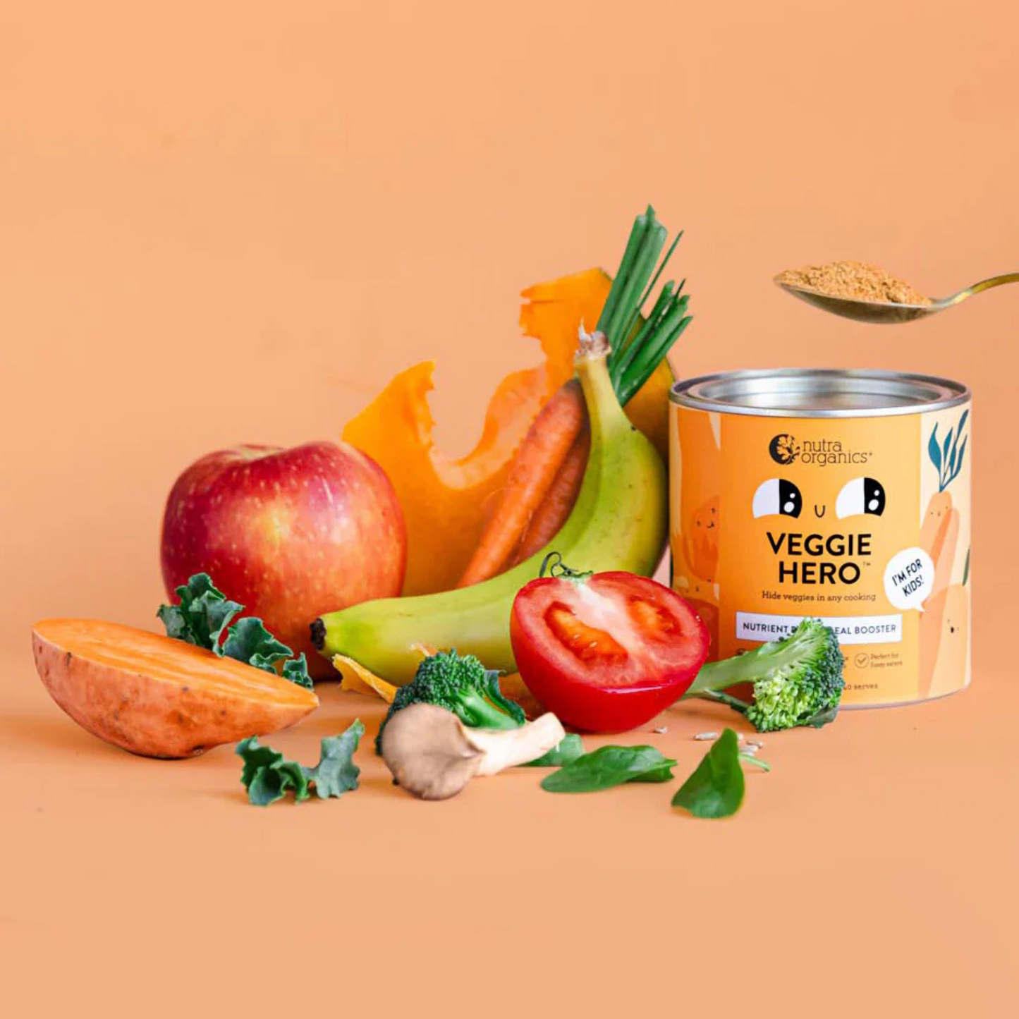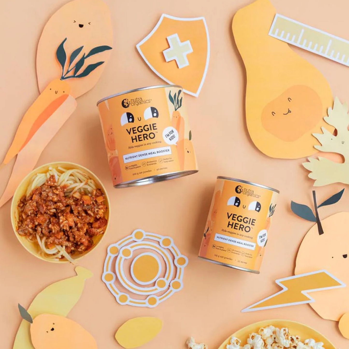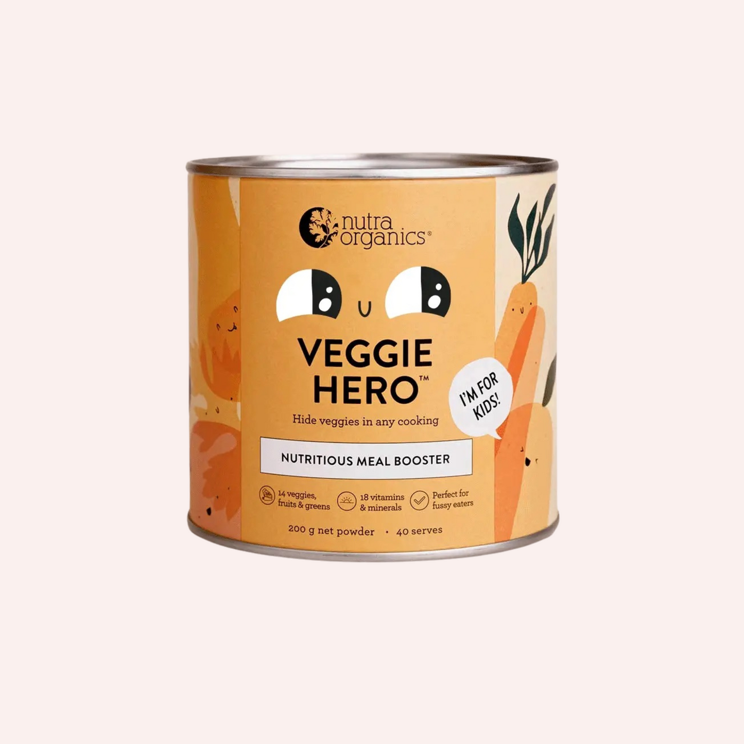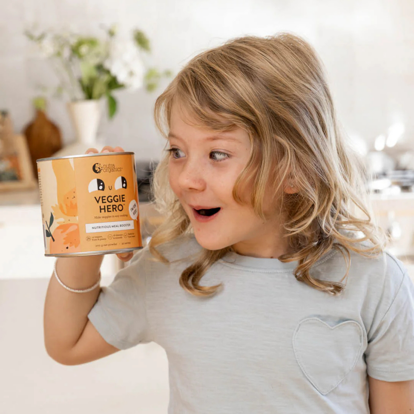Nutra Organics Veggie Hero makes it easy to get more veggies into your child's dietâwithout the fight. With bioavailable vitamins and minerals from real food, this nutrient-dense powder supports immunity, energy, and cognitive function. Perfect for fussy eaters, it has a mild savoury flavour that blends easily into meals like pasta sauce, soups, and savoury muffins.